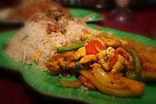 => Delicious Spicy Fried Rice with vegetables and chicken meat.